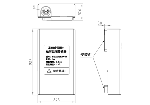 傳感器是一款高精度線性位移監測器,分辨力:0.5μm,精度:1%FS。且產品集成了位移監測、溫度監測等功能。支持485通訊輸出。寬電壓工作范圍,簡單易用,安裝方便。